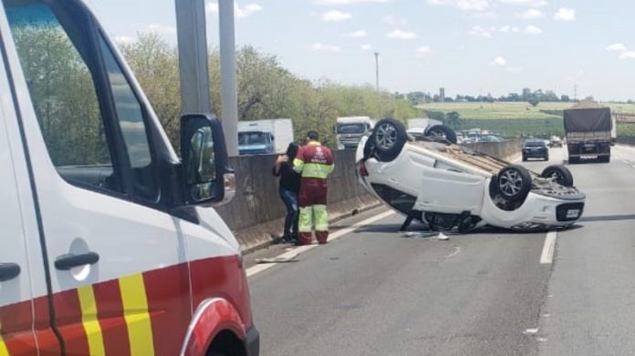 No início da tarde desta segunda-feira (23), a Polícia Militar Rooviária registrou uma colisão traseira seguido de capotamento, pelo km-121 da Rodovia Anhanguera (SP-330), município de Americana (SP).