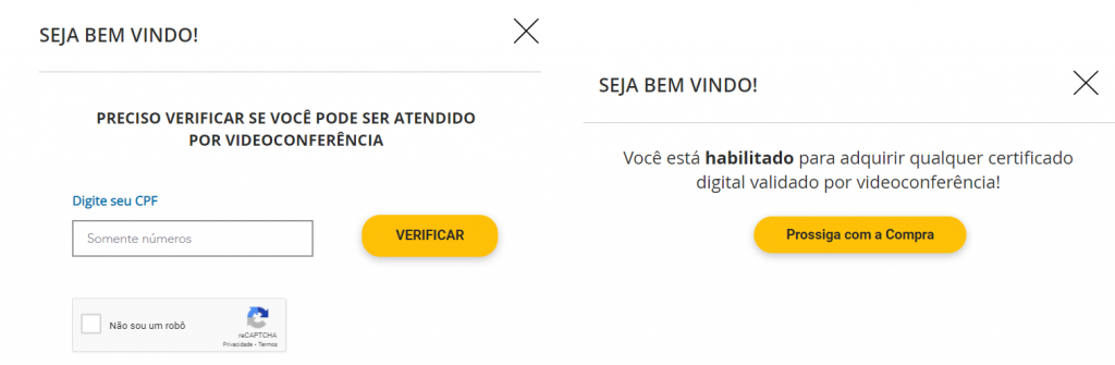 Passo 06: volte à tela inicial e selecione novamente o certificado adequado. Em seguida, aceite os termos para prosseguir com o pagamento, que pode ser efetuado por cartão ou boleto.