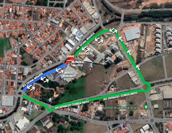 A Prefeitura Municipal de Araras (SP), informa que, nesta sexta (8), trecho da Avenida Dona Renata (Marginal) estará interditada próximo ao cruzamento com a Avenida Horácio Krepischi, próximo ao Maxxi Atacado. O bloqueio vai durar de 17h30 às 23h