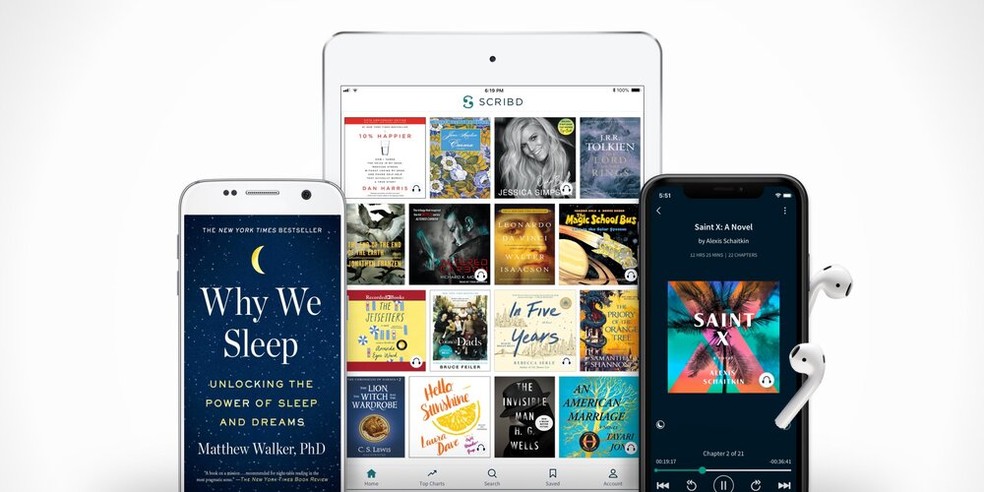 Além de e-books, o Scribd disponibilizou todo o seu acervo de forma gratuita. A iniciativa libera, por 30 dias, milhões de audiobooks, artigos de revistas e muito mais, sem necessidade de cadastro de cartão de crédito. De acordo com o CEO da empresa, Trip Adler, o objetivo da ação é que qualquer pessoa possa ter acesso aos seus livros preferidos, seja para entretenimento ou busca de conhecimento em qualquer área. Para aproveitar a promoção, basta acessar o site oficial do Scribd e resgatar os 30 dias gratuitos que estarão disponíveis.