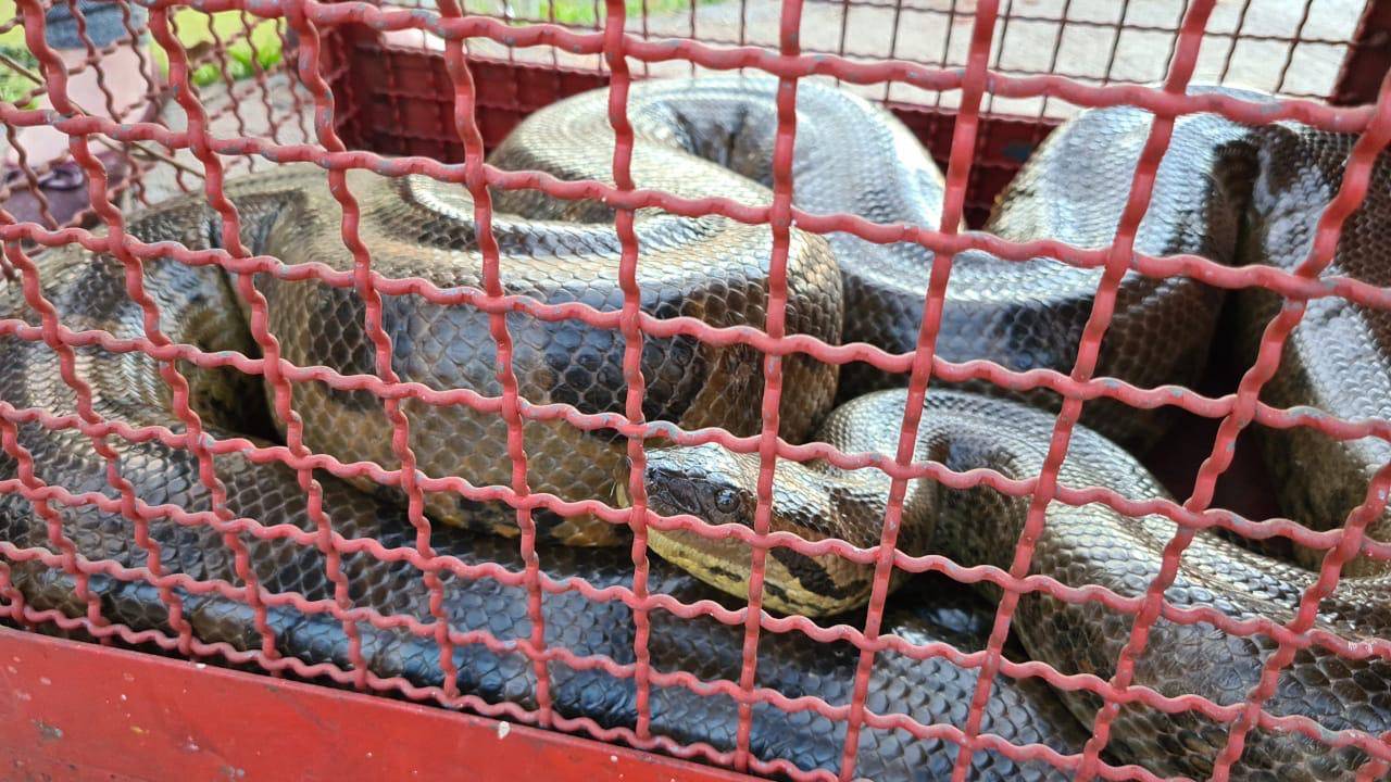 Uma cobra sucuri de quase 3 metros de comprimento, encontrada dentro do Condomínio Vila Rica, localizado na região leste de Araras (SP), foi resgatada na tarde desta quinta-feira (27), pelo Corpo de Bombeiros.