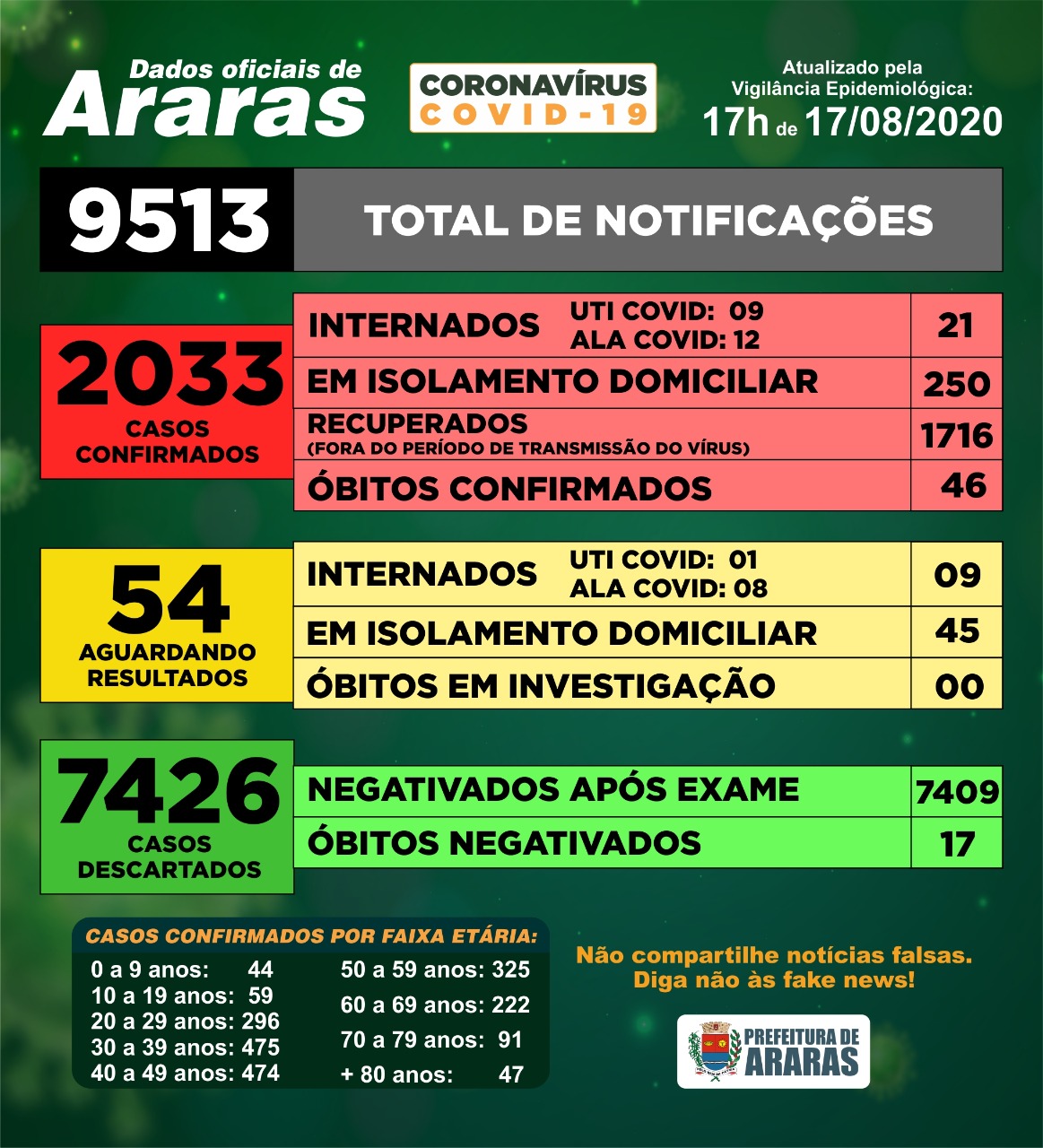 Com a correção, Araras registra até o momento 46 mortes em decorrência da covid-19, de acordo com dados atualizados pela Vigilância Epidemiológica às 17h desta segunda-feira.