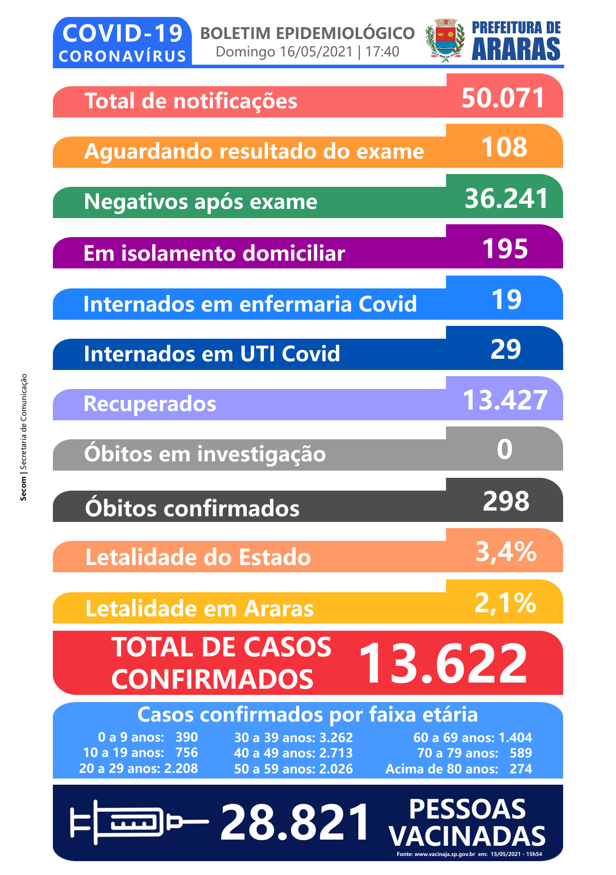 Ainda de acordo com o boletim oficial (acompanhe abaixo), 108 pessoas estão aguardando resultados dos exames e 195 estão em isolamento domiciliar. Vale lembrar que até o momento 13.427 já estão recuperadas da Covid-19.