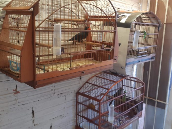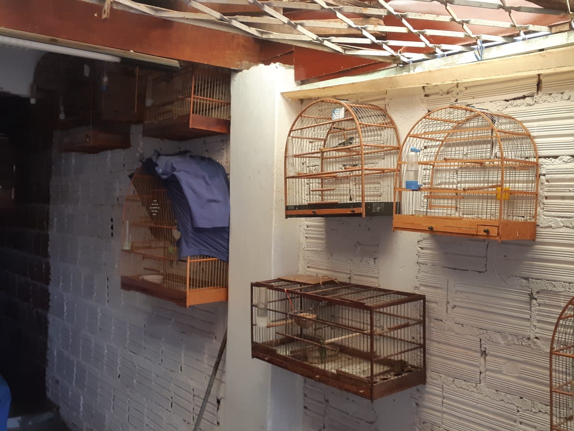 Trata-se de residência unifamiliar, onde foi constatado 15 (quinze) aves silvestres mantidas em cativeiro irregularmente, (sem anilha ou atestado de origem), sendo elas 07 (sete) “Coleirinhos”, 01 (um) “Canário da terra verdadeiro”, 05 (cinco) “Trinca ferros verdadeiros” e 02 (dois) “Pimentão”. As aves estavam dispostas em gaiolas com água e comida a disposição, abrigadas das intempéries e sem sinais de maus tratos.