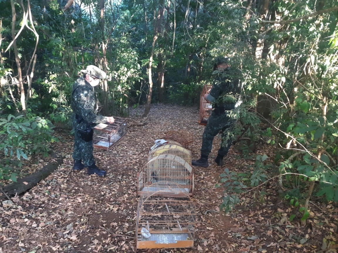 As aves foram aprendidas e soltas em área de mata, por se apresentarem em estado bravio e não apresentarem ferimentos.