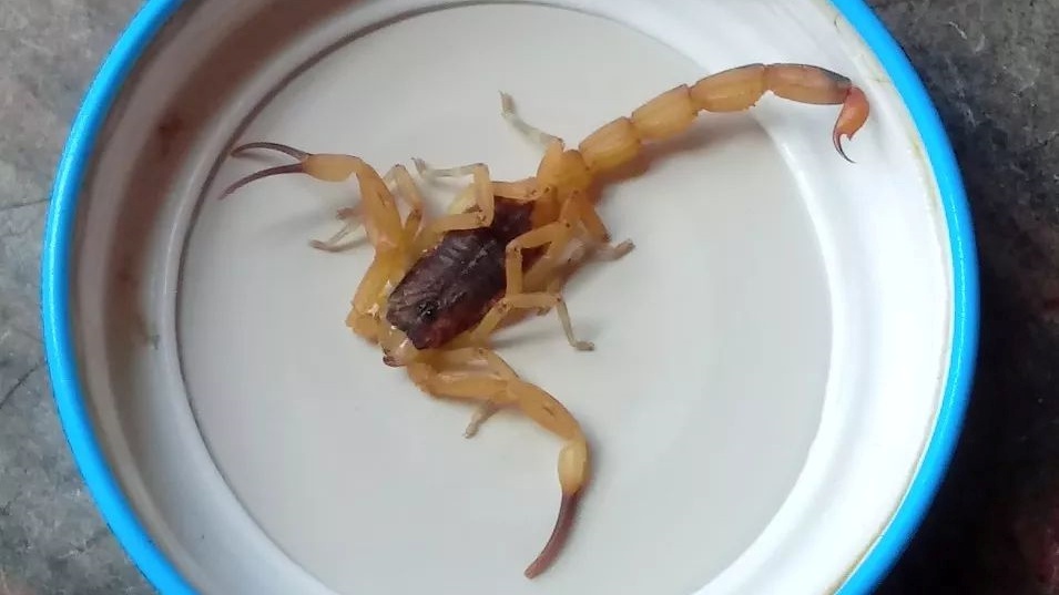 Caso encontre um escorpião, o ideal é contê-lo com um balde ou uma caixa e ligar para a Vigilância Epidemiológica. Não é aconselhado tentar fazer a captura por contra própria.