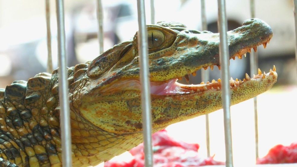 “Ele só fazia barulho e abria a boca, parecia um gato nervoso. Ele queria se defender e mordeu o dedo do meu filho. Ele [filho] segurou o jacaré pra colocar na caixa, mas ele estava muito agressivo e conseguiu morder o dedo, mas foi só uma picadinha”, afirma.