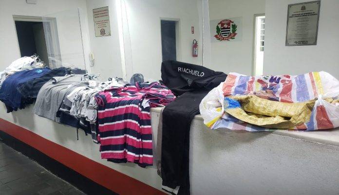 A equipe estava em patrulhamento quando suspeitou de dois indivíduos ao lado de um veículo VW/Gol. Na abordagem foram localizadas diversas peças de roupas, todas novas e com etiquetas.