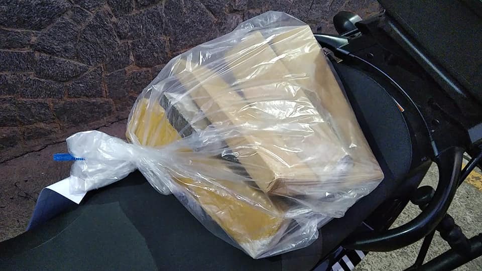 Ao averiguar a mochila, foram encontrados 5 tijolos de maconha, pesando aproximadamente 4kg.