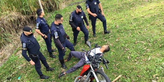 Na tarde de terça-feira (15), a equipe de ROMU/Motos, da Guarda Civil Municipal de Cotia (SP), em deslocamento pela Rodovia Raposo Tavares (SP-270), sentido interior, para apoiar uma viatura pela área central da cidade, se deparou com uma motocicleta Honda/GC-160, cor vermelha, ocupada por dois indivíduos, os quais se assustaram ao perceberem nossa aproximação e começaram a se evadir.