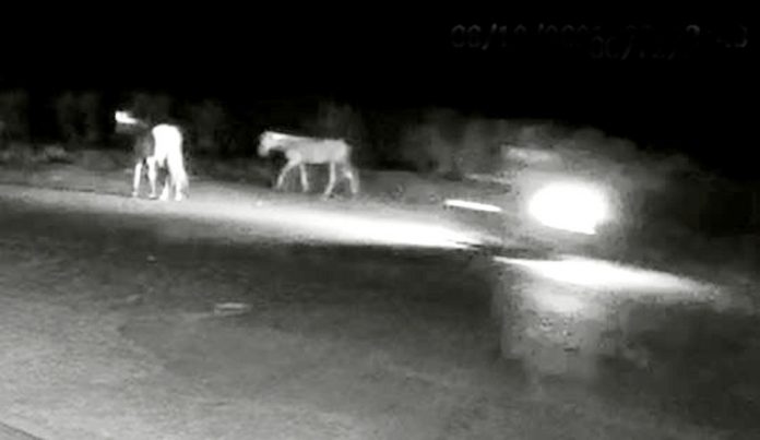 Câmera de segurança instalada na vicinal José Maria Verdini registrou batida do condutor da moto de contra o animal; Polícia Civil vai investigar o caso.
