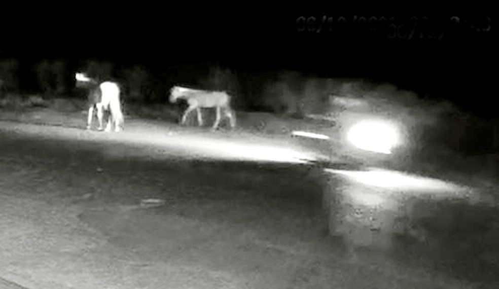 Nas imagens é possível ver que o local estava bastante escuro e dois cavalos aparecem soltos na pista. O motociclista acabou atingindo um dos animais, que conseguiu sair da estrada após a batida