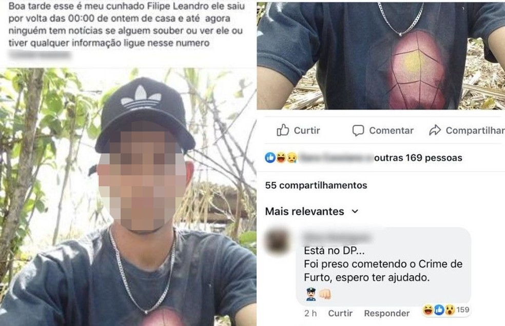 Na postagem, um policial militar da cidade, de forma irônica, informou: “Está no DP… Foi preso cometendo o crime de furto. Espero ter ajudado”. Após o comentário da autoridade, a publicação na página da cidade foi removida, no entanto, a situação acabou gerando grande repercussão nas redes sociais.