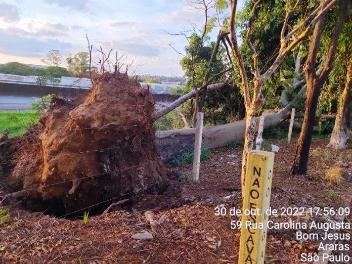 No último sábado (29), Araras registrou ventos de até 70 km/h e queda de mais de 20 árvores, segundo o levantamento da Defesa Civil, departamento ligado à Secretaria Municipal de Segurança Pública.
