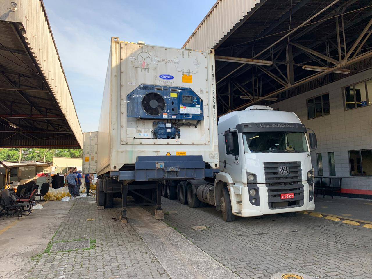 Nas proximidades, os policiais também apreenderam um caminhão baú refrigerado contendo contêineres com polpa congelada de laranja que tinham como destino a República Checa. Dentro do produto foram localizados mais tijolos de cocaína.