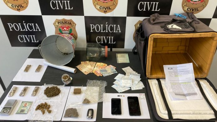 Além da maconha e do haxixe, também foram apreendidos materiais para embalo das drogas, dois aparelhos celulares, uma balança de precisão, uma caixa de transporte de alimentos para motociclistas com cheiro de maconha, diversos documentos e um veículo Hyundai/IX-35, que era utilizado para realizar o delivery de drogas.