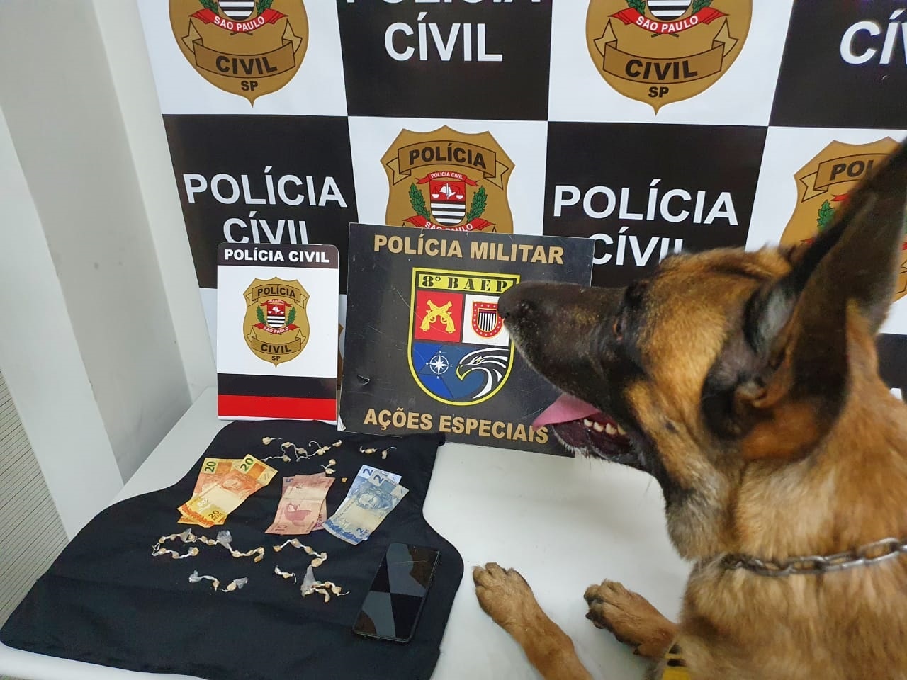 Os policiais foram até o local e flagraram intensa movimentação de usuários adquirindo drogas. Com auxílio de um cão farejador do 8º Batalhão de Ações Especiais de Polícia (BAEP), as equipes realizaram a abordagem.
