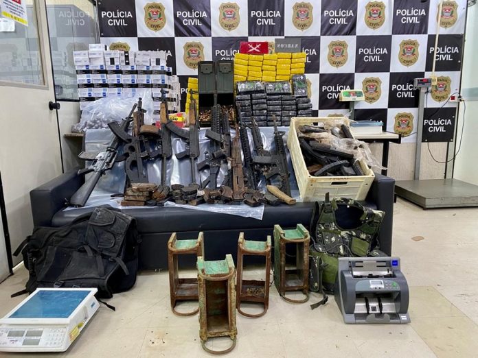 Também foram recolhidas mil munições, coletes balísticos, prensas, entre outros objetos.