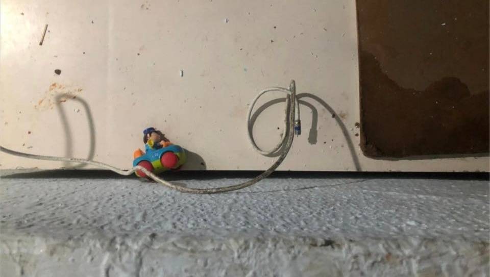 Os policiais militares encontraram a garotinha desamparada e amarrada com fios.