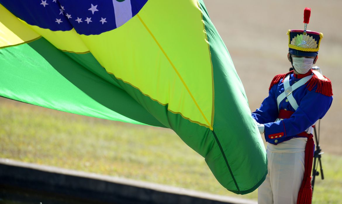 As celebrações pelo Dia da Independência não teve o tradicional desfile militar na Esplanada dos Ministérios. Em tempos de pandemia de covid-19, a data foi comemorada com uma cerimônia de hasteamento da bandeira nacional no Palácio da Alvorada, com a presença do presidente Jair Bolsonaro.