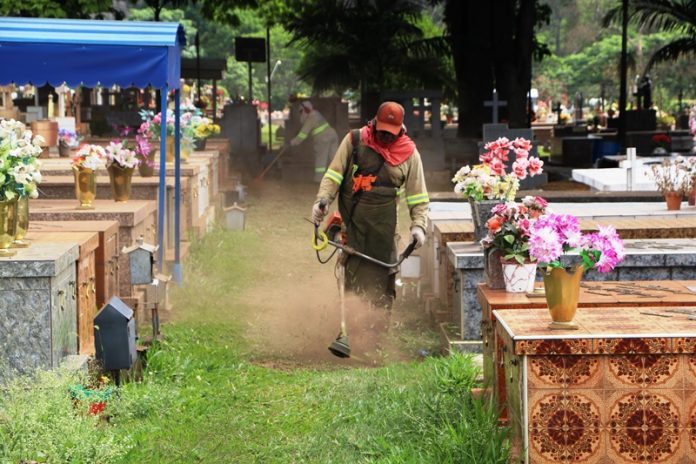 Faltando poucos dias para o Feriado de Finados, celebrado em 2 de novembro, a Prefeitura intensifica os serviços no Cemitério Municipal para receber visitantes em Araras (SP). O movimento no local aumenta antes mesmo do feriado, com a ida das pessoas para homenagear familiares e amigos queridos e também limpar e enfeitar túmulos.
