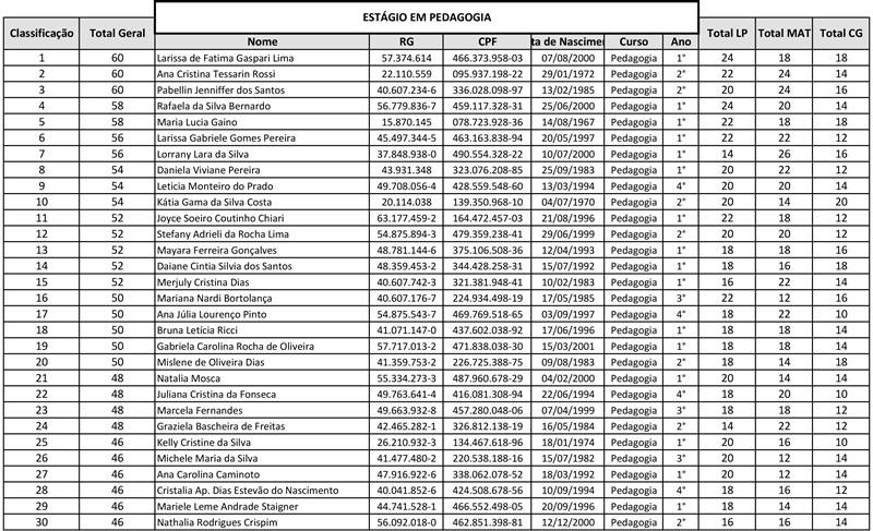 Os testes foram aplicados para estudantes dos cursos de Administração e de Pedagogia. Serão ofertadas 67 vagas. Sendo elas (5) para Administração e (62) para Pedagogia. Os selecionados receberão o benefício no valor de R$ 1.147,70 para a jornada máxima de 6h diárias e 30 semanais. A duração de estágio é de 12 meses, podendo ser prorrogado por mais 12.