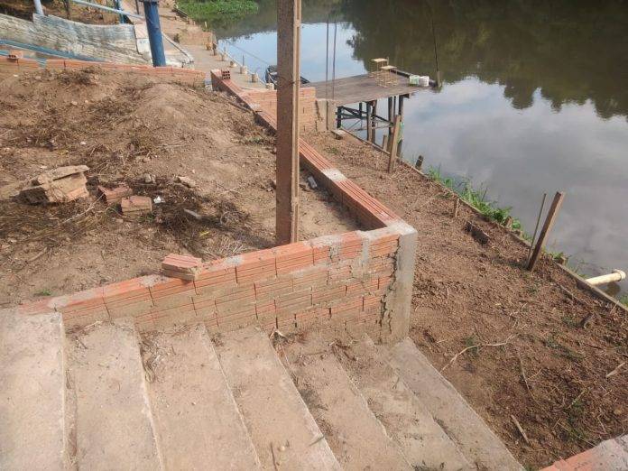 Na terça-feira (8), os policiais militares ambientais cabo Fernando e soldado Ezequiel, estiveram no bairro Cascata em Araras (SP), em atendimento à denúncia sendo constatada intervenção em Área de Preservação Permanente, mediante a construção de escada e muro às margens do rio Mogi Guaçu.
