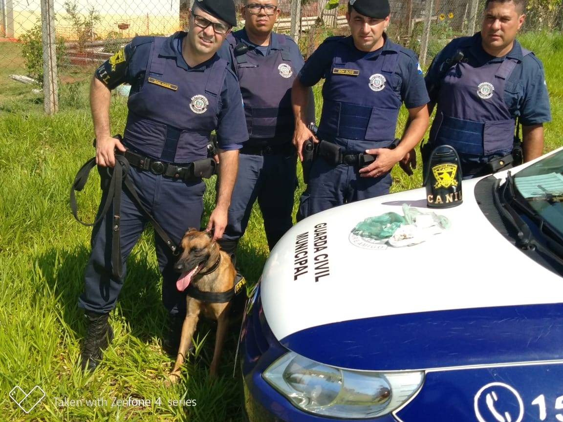 Em ronda de rotina a equipe do canil se deslocou até o local conhecido como ponto de tráfico, e com ajuda do cão farejador Zeus, os GCMs localizaram uma quantidade de entorpecentes (Maconha e Cocaína), que estava escondida no local.