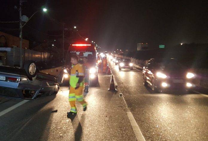 Duas pessoas ficaram feridas após o carro em que estavam capotar na altura do Km 95 da marginal da Rodovia Anhanguera (SP-330), em Campinas (SP), na noite desta quinta-feira (16).