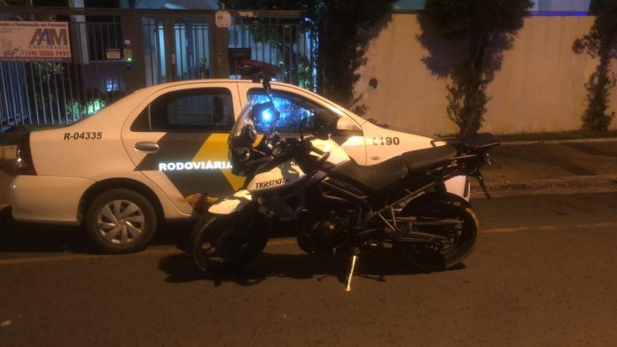 Feita a pesquisa do número chassi, verificou-se tratar do veículo Triumph /Tiger cor branca de placa de Guarujá (SP), com queixa de roubo, registrado em 31DEZ19 pela delegacia plantão de Indaiatuba (SP). Indagados sobre os fatos, responderam que compraram juntos a motocicleta de um indivíduo desconhecido pelo valor de 1.000,00 (mil reais).