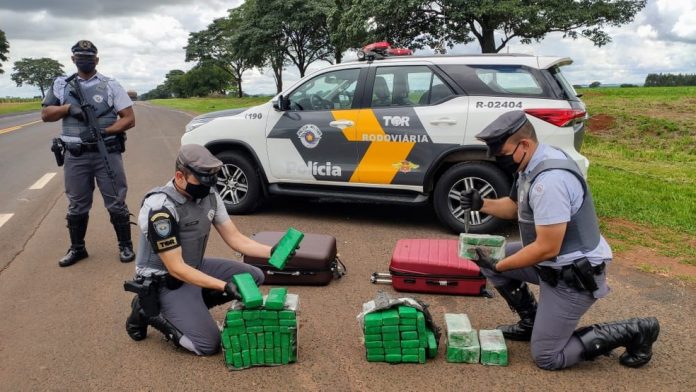 De acordo com informações do Tático Ostensivo Rodoviário (TOR), policiais realizavam patrulhamento de rotina, quando decidiram abordar o veículo e encontraram os entorpecentes divididos em duas malas.