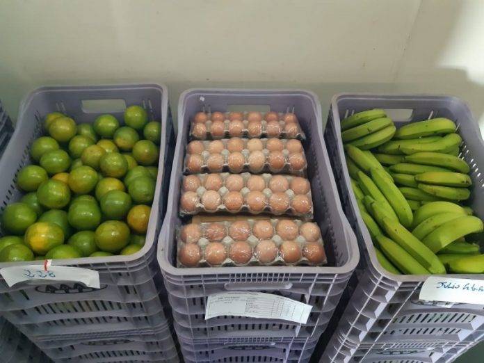 De acordo com informações, os kits são compostos dos seguintes itens alimentícios: abobrinha (3 unidades), cenoura (6), laranja (12), banana (12), goiaba (4), ovo (12) e mel (250 gramas).