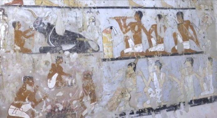 rqueólogos egípcios descobriram o túmulo de uma sacerdotisa do Antigo Império, decorado com murais e pintura bem conservados, ao sul do Cairo. De acordo com o Ministério de Antiguidades, a tumba tem 4.400 anos.