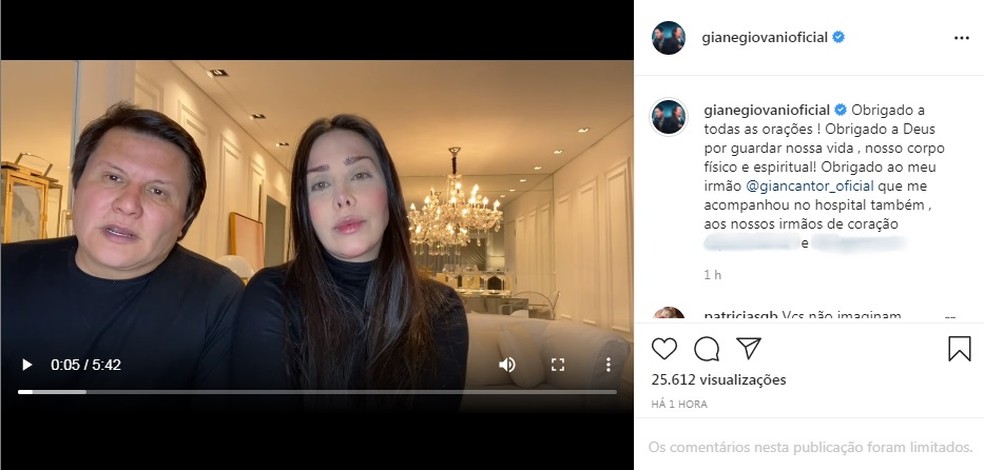 O cantor Giovani, da dupla com Gian, e a esposa dele falaram nas redes sobre o acidente que sofreram na manhã deste sábado (31), na Rodovia Presidente Dutra, em Arujá. No vídeo, Anna Carolina Morais contou que o marido chegou a desmaiar após o capotamento do carro em que estavam.