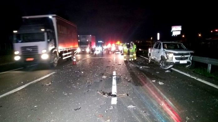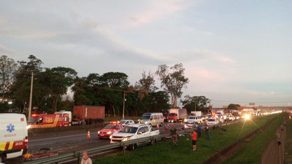 Depois do acidente, o congestionamento na região chegou a quatro quilômetros. Até 21h45, a lentidão havia sido reduzida para dois, até o km 105, segundo a concessionária responsável pelo trecho.