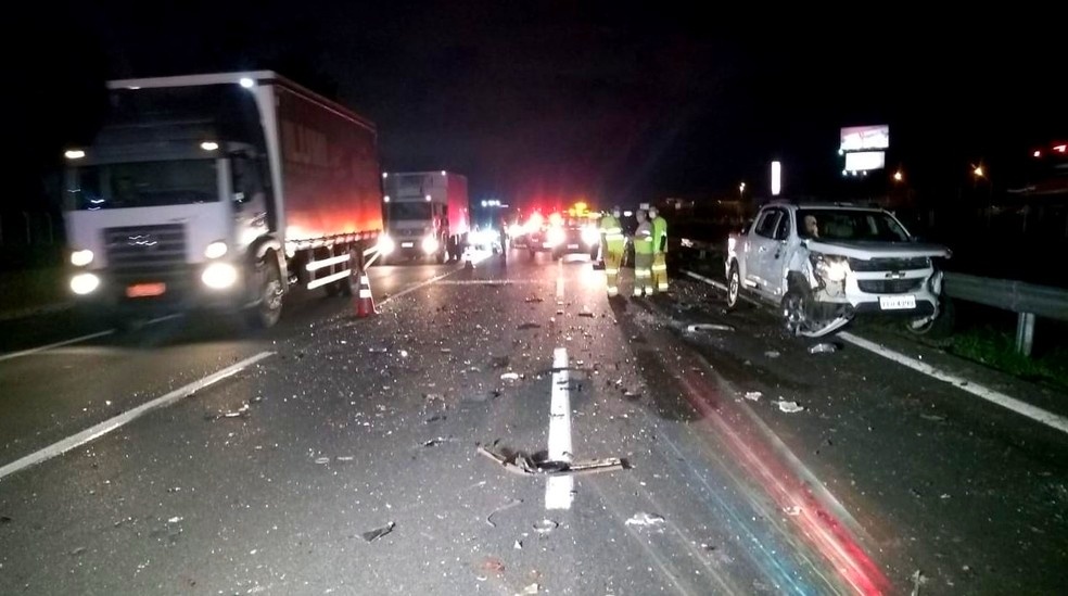 Duas pistas foram interditadas para atendimento e a causa do acidente não foi confirmada. Segundo a polícia, entretanto, o condutor de um dos veículos disse que houve falha no freio, antes das batidas.