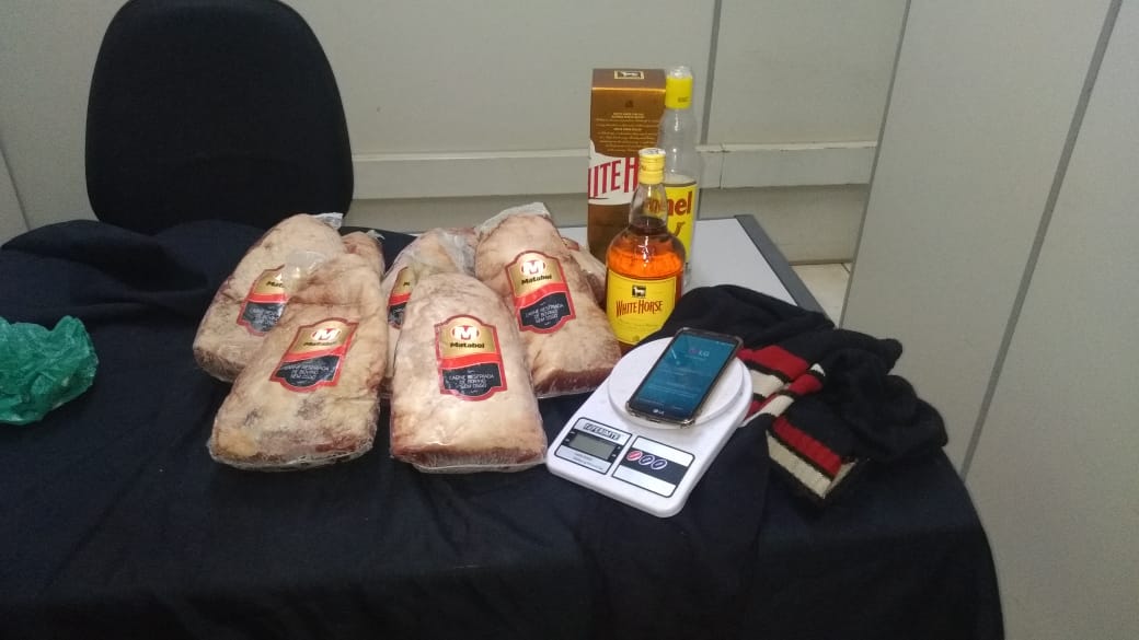 Ele havia furtado uma balança de precisão, um aparelho celular, três litros de bebidas, sendo dois deles whisky, sete peças de picanha, além de outros objetos.