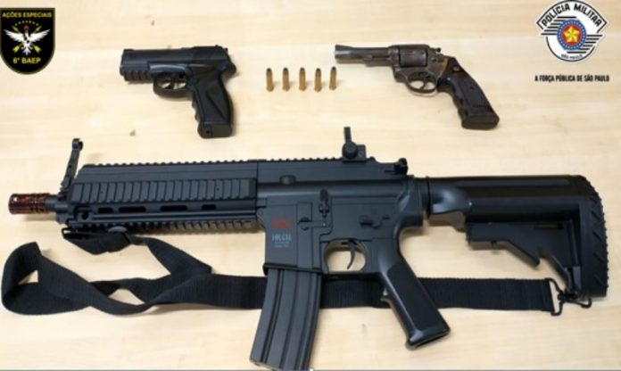 Questionados ambos a respeito dos armamentos informaram que seria para prática de roubo a veículo, informando ainda que em sua residência havia um simulacro de fuzil, este localizado posteriormente pela equipe em sua residência. Diante dados e fatos ambos foram encaminhados ao 1º Distrito Policial de Mauá.