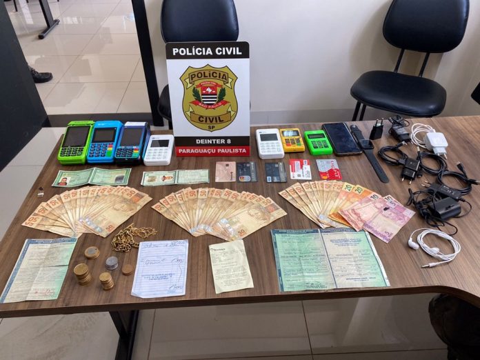 Um homem foi preso nesta quinta-feira (2) suspeito da prática de crimes de estelionato aplicados contra moradores de Paraguaçu Paulista (SP). Com ele, foram entradas diversas máquinas de cartão de crédito, aparelho de telefone celular e um total de R$ 2.625 em dinheiro.