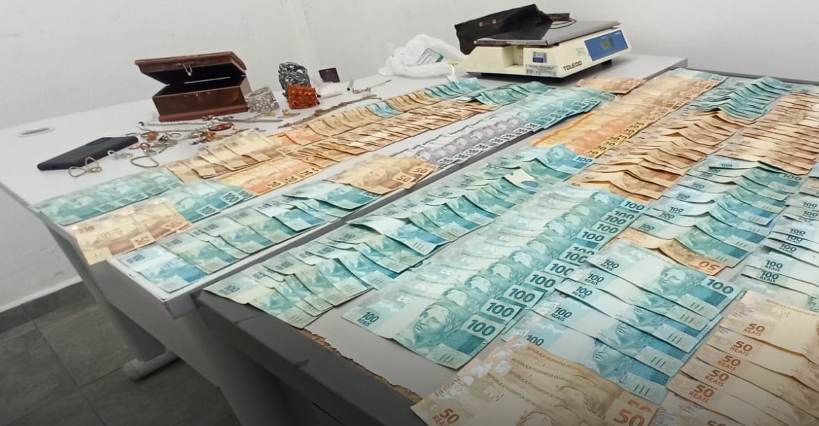 Foram localizadas joias e grande quantidade de dinheiro em espécie escondido sob a forração do assoalho do lado do passageiro.