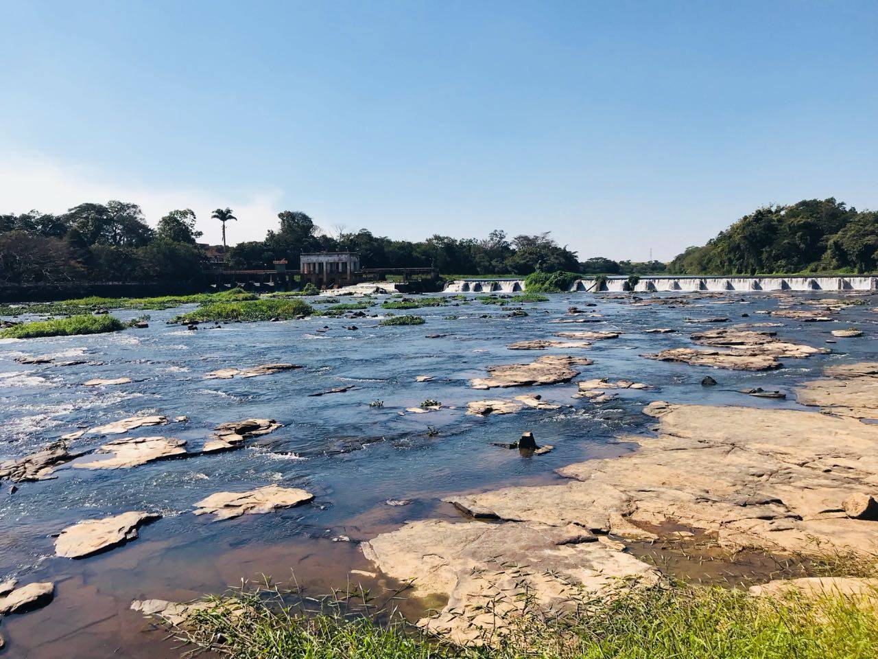 Em Americana, 100% da água que abastece a população sai do Rio Piracicaba. Segundo o Departamento de Água e Esgoto, já faz mais de um mês que não cai uma gota sequer de água na cidade. E a vazão no ponto de captação só está normal por causa da estratégia de colocar pedras pra elevar o nível do rio.