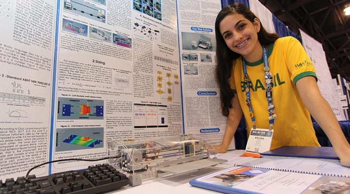 A estudante de 19 anos do curso técnico de Engenharia, Bruna da Silva, desenvolveu uma impressora que permite a reprodução de textos em Braille, o sistema de escrita tátil utilizado por aqueles que possuem baixa visão ou são cegos.