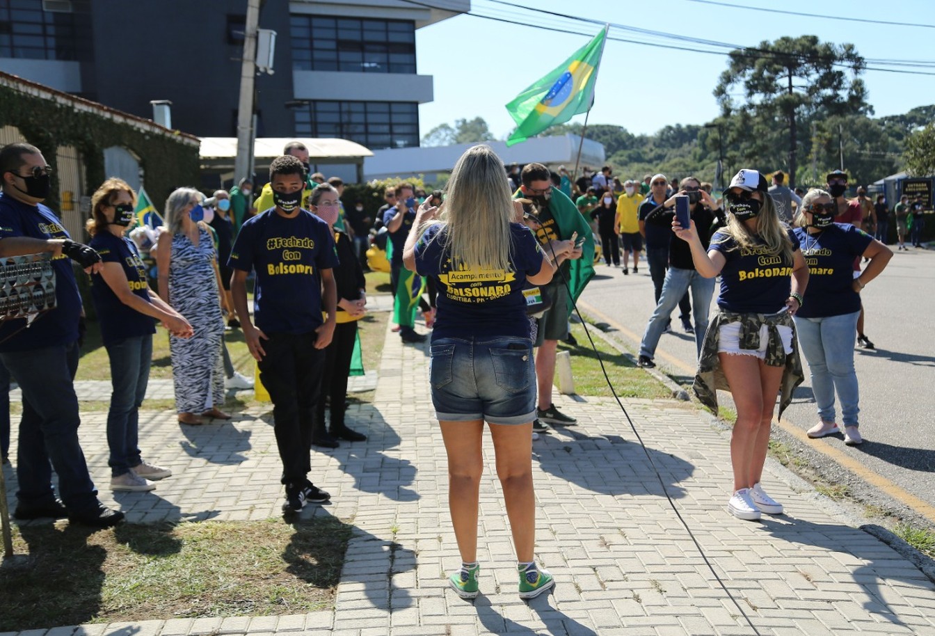 Dezenas de manifestantes estão aglomerados em frente à PF desde o início da manhã. Há grupos a favor do ex-ministro e também a favor do presidente Bolsonaro. Eles estão reunidos com faixas, cartazes, carro de som e gritam palavras de ordem.