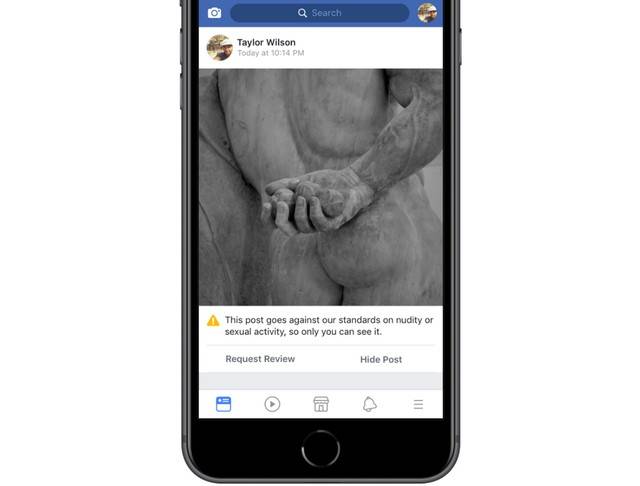 Com relação a postagens de imagens com nudez, o Facebook disse que suas políticas ficaram mais flexíveis com o passar do tempo. “Por exemplo, embora restrinjamos algumas imagens dos seios femininos que incluam o mamilo, permitimos outras imagens, incluindo as que mostram atos de protesto, mulheres engajadas ativamente na causa da amamentação e fotos de cicatrizes pós-mastectomia. Também permitimos fotos de pinturas, esculturas e outras obras de arte que retratem figuras nuas”, afirma o documento publicado pelo Facebook sobre conteúdo questionável, que aborda também “discurso de ódio”, “violência gráfica” e conteúdo “cruel e insensível”.
