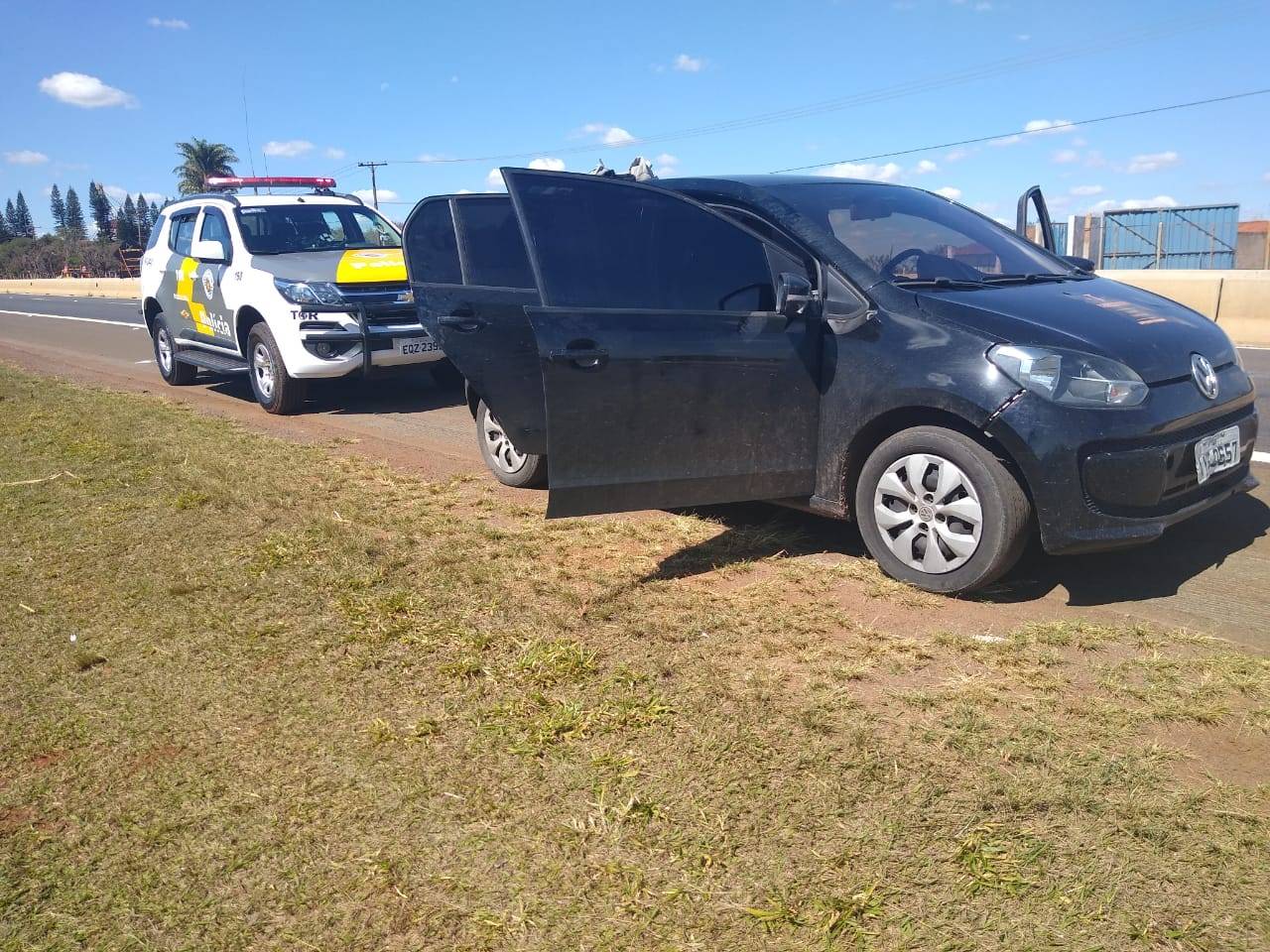 Na tarde desta quinta-feira (08), equipe de TOR – Tático Ostensivo Rodoviário, durante o patrulhamento voltado para o combate a ocorrências de ilícitos penais, ouviram a comunicação do COPOM do 36° BPMI, que três indivíduos com um VW/Up de cor preta, estavam pela cidade de Pirassununga (SP) em atitudes suspeitas, usando capuz.