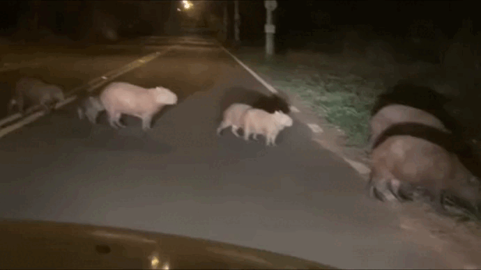 Uma grupo de capivaras foi visto circulando pela rua Oswaldo Menegasso, na região do Jardim Terras de Santa Elisa, na noite de quarta-feira (15) na cidade de Araras (SP). Assista ao vídeo abaixo.