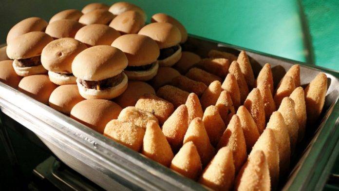 De bebidas, serão oferecidos água, refrigerantes, cerveja, chope pilsen tradicional, escuro tipo Malzbier e IPA.