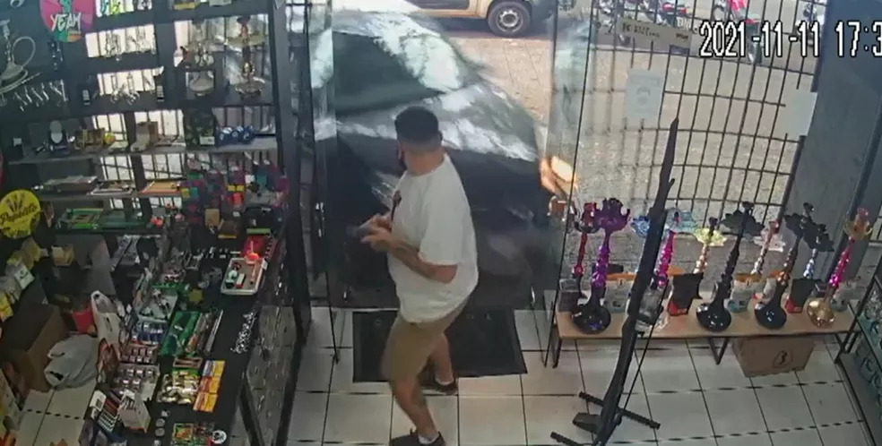 Câmeras registraram o acidente. Uma das imagens mostra o carro na avenida, sem nenhum veículo do lado. De repente, o motorista fez a conversão em direção à calçada e invadiu a loja. “Foi um baita susto. A gente não espera que vai acontecer isso com a gente. Tanto que na hora eu não achei que tinha sido tão perto. Vendo o vídeo depois, das câmeras, eu tive noção de quão perto foi, foram poucos centímetros. Mas foi só isso, foi só o susto, não aconteceu nada, não tive nenhum arranhão, estou bem e foi só prejuízo material”, disse o funcionário Tiago Teixeira.