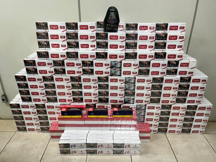 Ao avistar a equipe policial ele que estava colocando algo no porta malas, saiu correndo para o interior da residência, sendo acompanhado pela equipe e detido no interior de um quarto separado da casa, quanto onde foi encontrado o total de 470 pacotes de cigarro Eight, 43 pacotes de cigarro Villas e mais 24 pacotes de cigarro Fit, além de certa quantidade no interior do veículo. Totalizando 537 pacotes de cigarros.