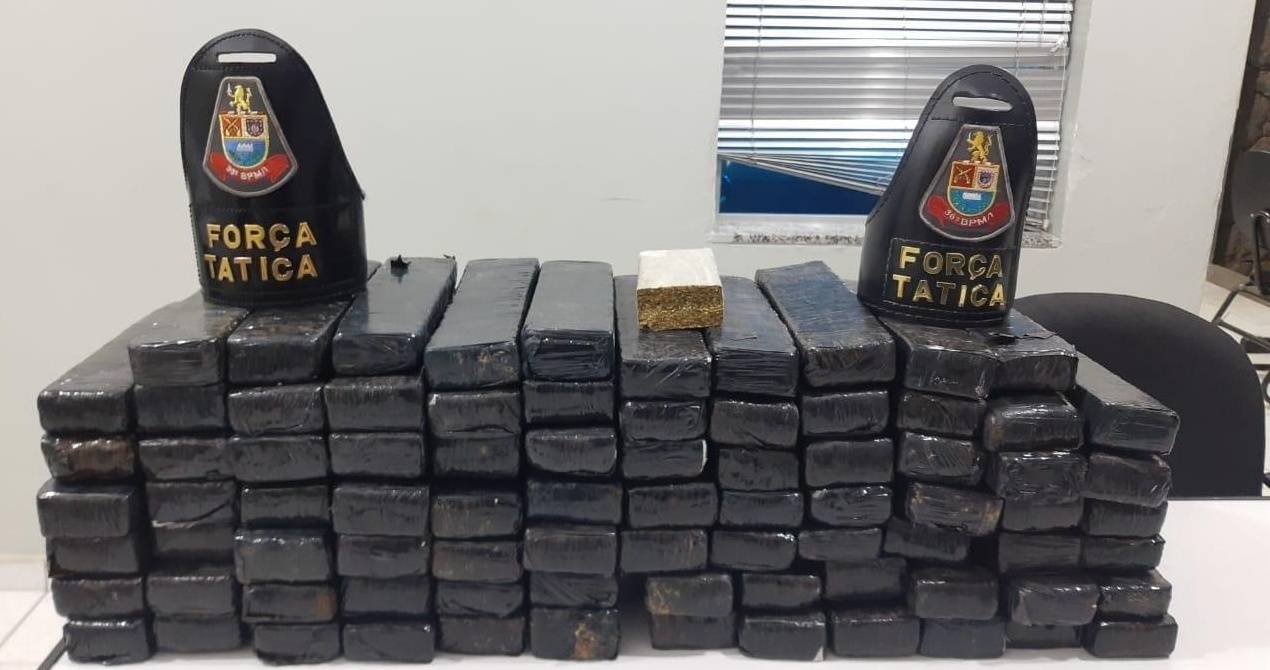 Durante busca veicular, foi localizado 83 tijolos de maconha (foto abaixo), todas idênticas e embaladas. Diante dos fatos dados apresentados ao plantão da Central de Polícia Judiciária, onde a autoridade presente apreendeu a droga, celulares, dinheiro, dois veículos, posteriormente ratificou a voz de prisão nos quatro abordados, deixando os à disposição da Justiça.